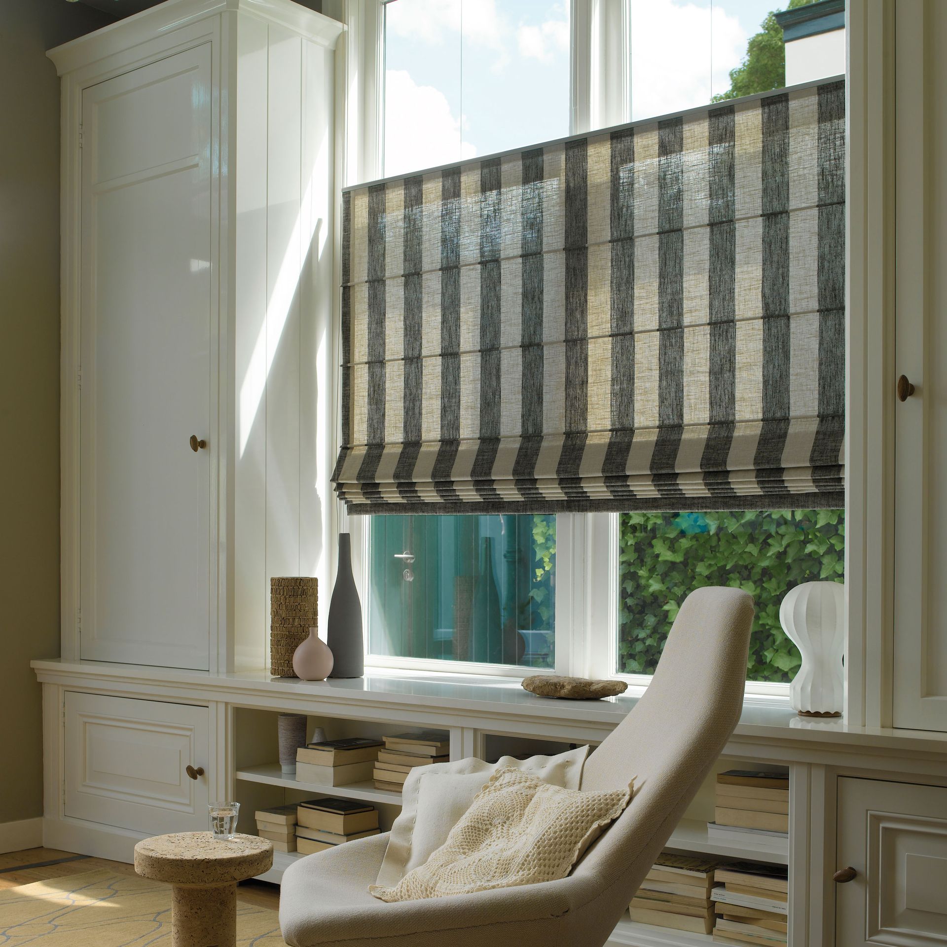 Das Raffrollo ist die perfekte Symbiose aus Technologie, Handarbeit und Kreativität. Individuell ausgewählte Stoffe werden manuell nach Maß zum Faltrollo konfektioniert und erlauben so eine flexible Raumgestaltung. Die Anwendung reicht von konventionellen Fenstern und Terrassentüren über Giebelfenster und gebogene Anlagen bis zu Dachfenstern. Besonders interessant ist, dass beim Raffstore im Gegenzug zum klassischen Vorhang links und rechts des Fensters kaum bzw. kein Platz benötigt wird, um den Stoff zu parken, da die Bahnen nur vertikal und nicht konventionell horizontal bewegt werden.